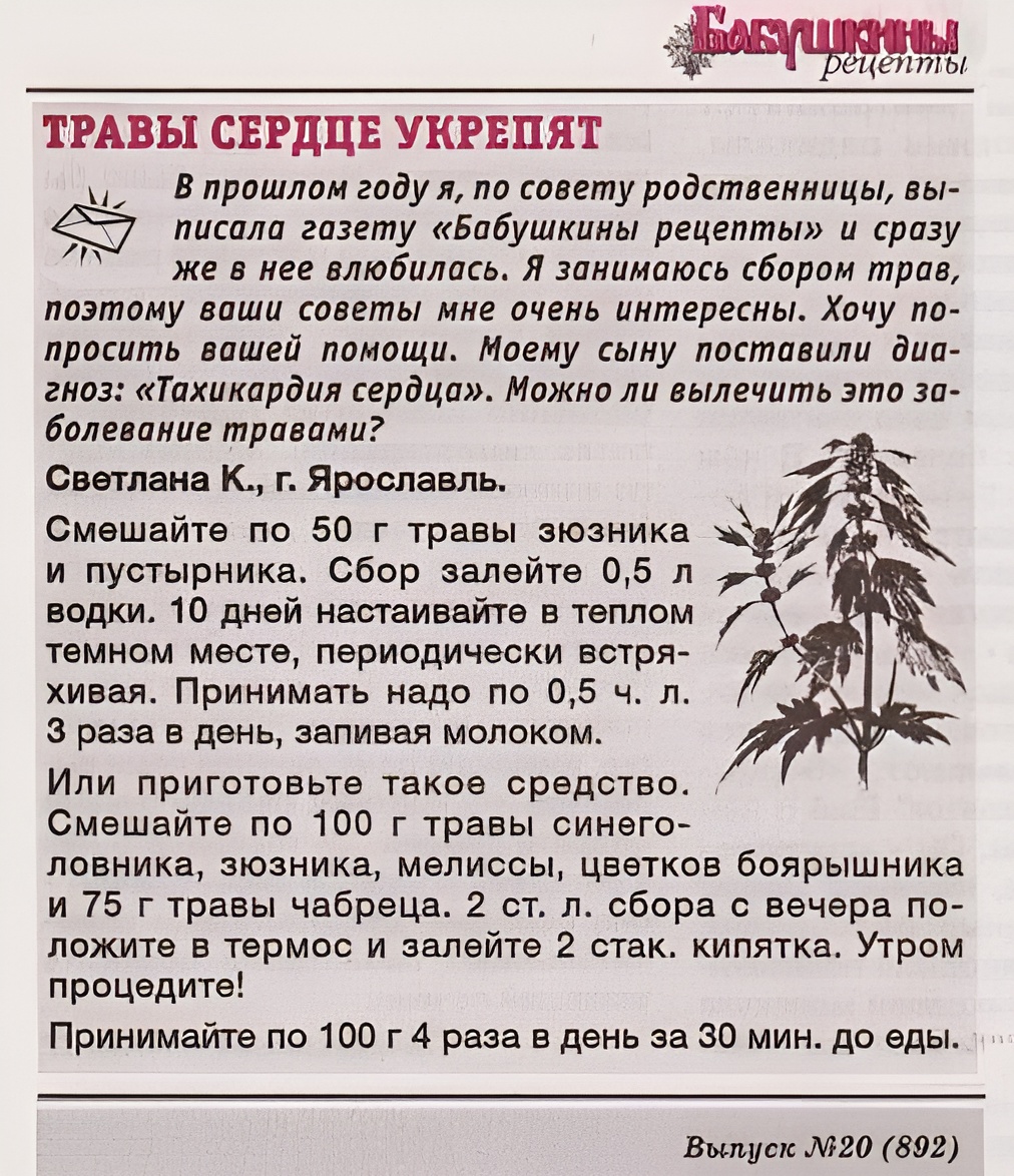 Тахикардию сердца лечат травы