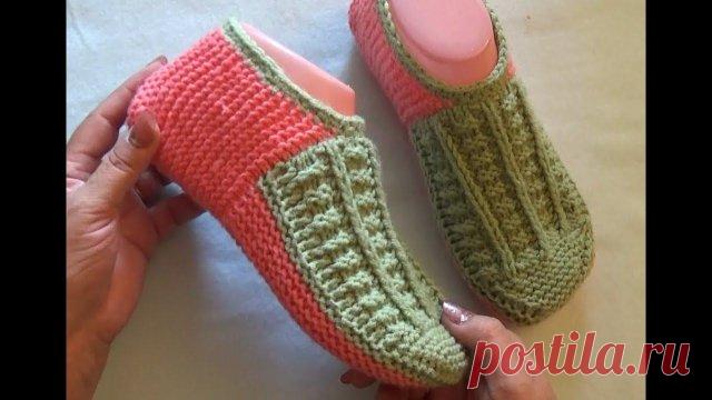 Тапочки спицами. Вяжутся очень легко. Сегодня свяжем тапочки бесшовные спицами. Высокая удобная пяточка, связаны красивым и понятным узором мысик. Впрочем попробуйте связать, вы сможете и вам они понравятся. Как связать подошву или рассчитать петли на любой размер смотрите здесь Как рассчитать петли на ваш размер смотрите здесь Как прав