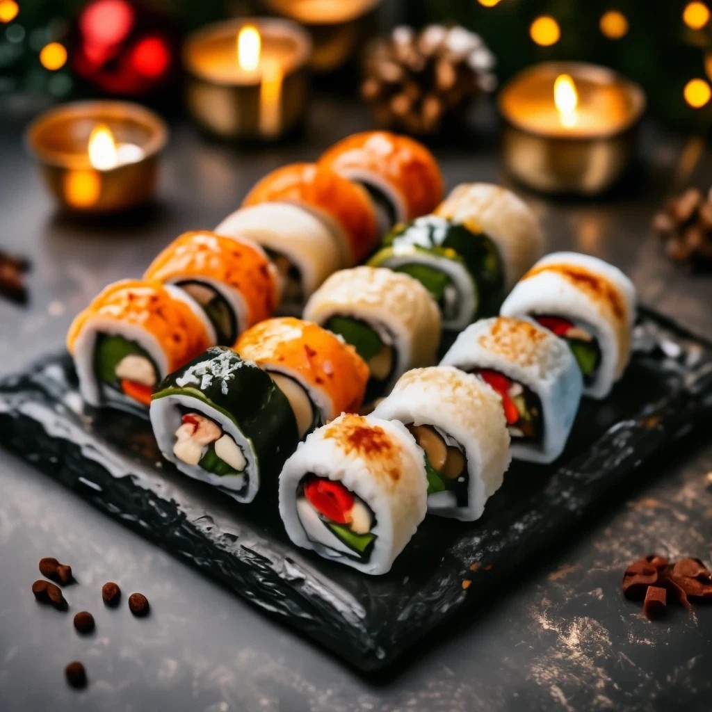 ПРАЗДНИЧНЫЙ СЕТ РОЛЛОВ (нейросеть Шедеврум).