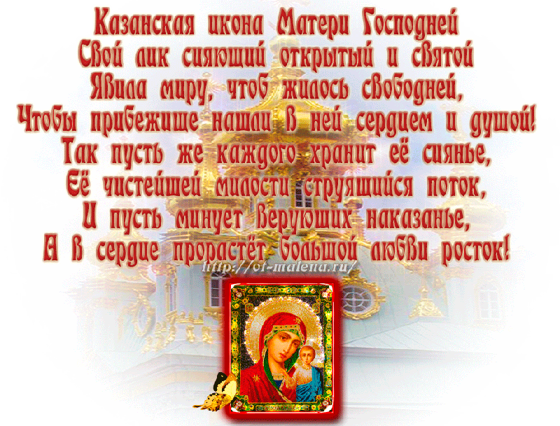 Пусть Божья Матерь принесет В твой дом уют, тепло, доход, От бед и слез убережет, Порядок в сердце наведет! Открытки на День Казанской иконы Божией Матери!