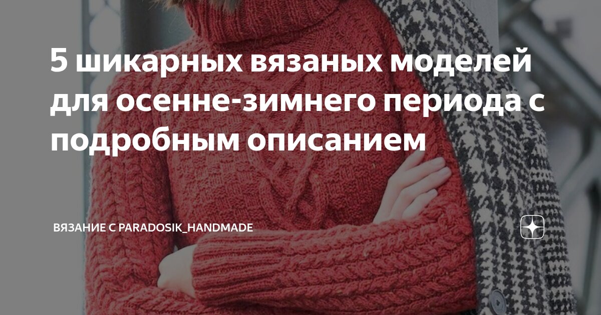 5 шикарных вязаных моделей для осенне-зимнего периода с подробным описанием Статья автора «Вязание с Paradosik_Handmade» в Дзене ✍: Друзья! Поздравляю нас с наступлением ноября! Не бог весть какой праздник, с одной стороны. С другой, это значит, что совсем скоро Новый год!