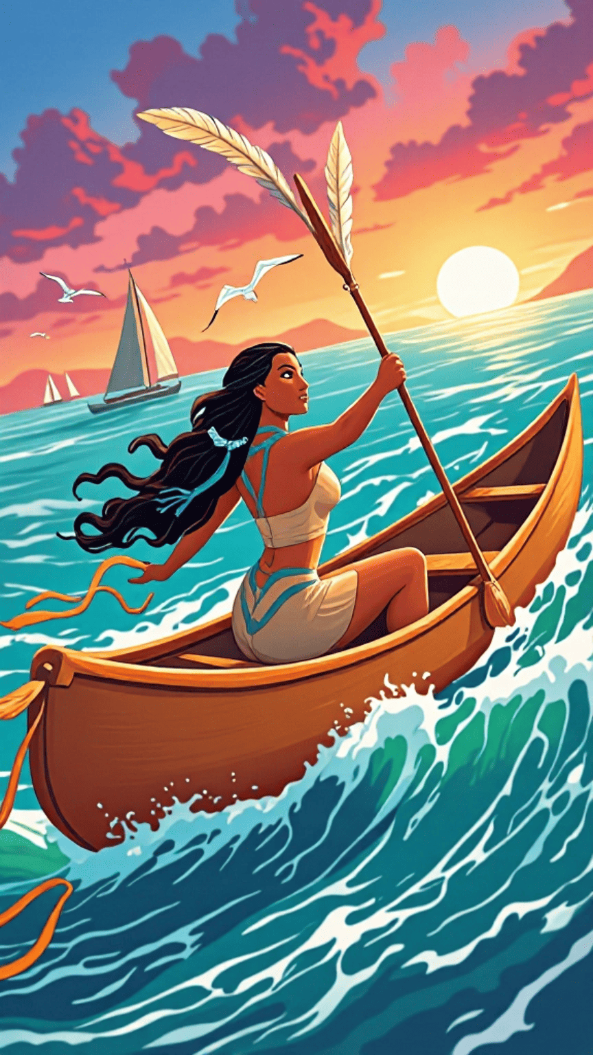 🌊✨ Познайте мощь духа и вдохновение! Покахонтас ведет свою лодку по бескрайним водам. Не пропустите наш новый шортс, который вдохновит вас на борьбу за мечты. Поделитесь с теми, кто это оценит! 🎥💖