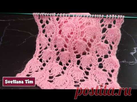 АЖУРНЫЙ УЗОР СПИЦАМИ "Листочки" + схема узора. МК вязание спицами