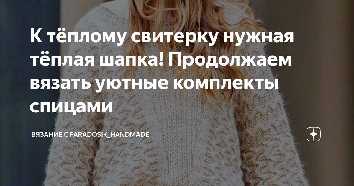 К тёплому свитерку нужная тёплая шапка! Продолжаем вязать уютные комплекты спицами Статья автора «Вязание с Paradosik_Handmade» в Дзене ✍: На носу зима, поэтому без тёплого свитерочка никак!