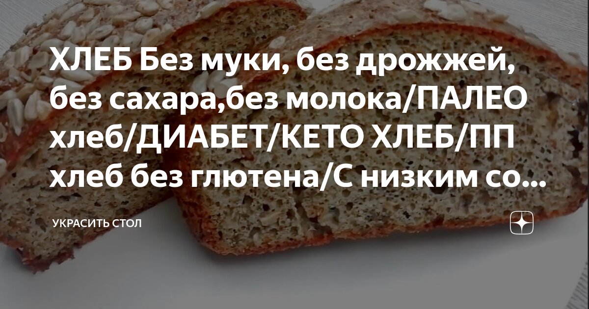 ХЛЕБ Без муки, без дрожжей, без сахара,без молока/ПАЛЕО хлеб/ДИАБЕТ/КЕТО ХЛЕБ/ПП хлеб без глютена/С низким содержанием углеводов Статья автора « Украсить стол » в Дзене ✍: Здравствуйте,друзья!Сегодня готовим ХЛЕБ Без муки, без дрожжей, без сахара,без молока.ПП хлеб без глютена.