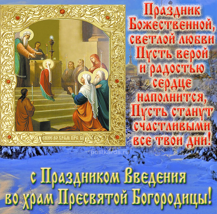 Праздник Введение во храм Пресвятой Богородицы - Открытки ... Найдено в Google. Источник: postkards.ru
