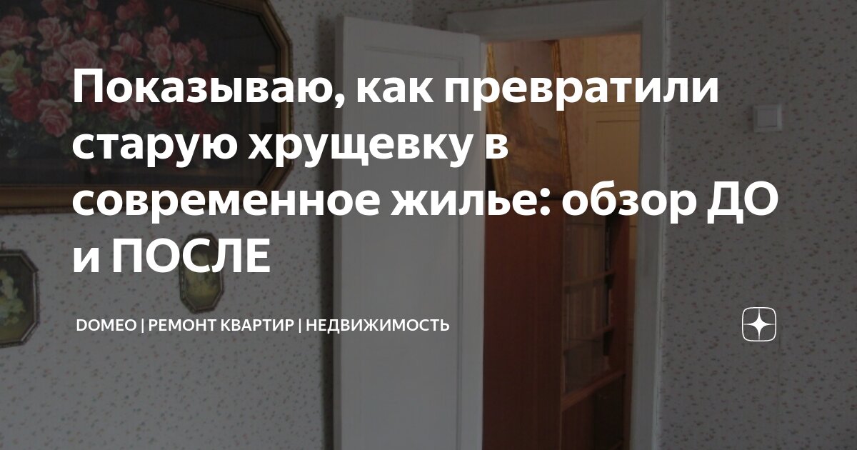 Показываю, как превратили старую хрущевку в современное жилье: обзор ДО и ПОСЛЕ Статья автора «DOMEO | РЕМОНТ КВАРТИР | НЕДВИЖИМОСТЬ» в Дзене ✍: Глядя на фото старых хрущевок, сложно поверить, что такое жилье можно сделать современным.