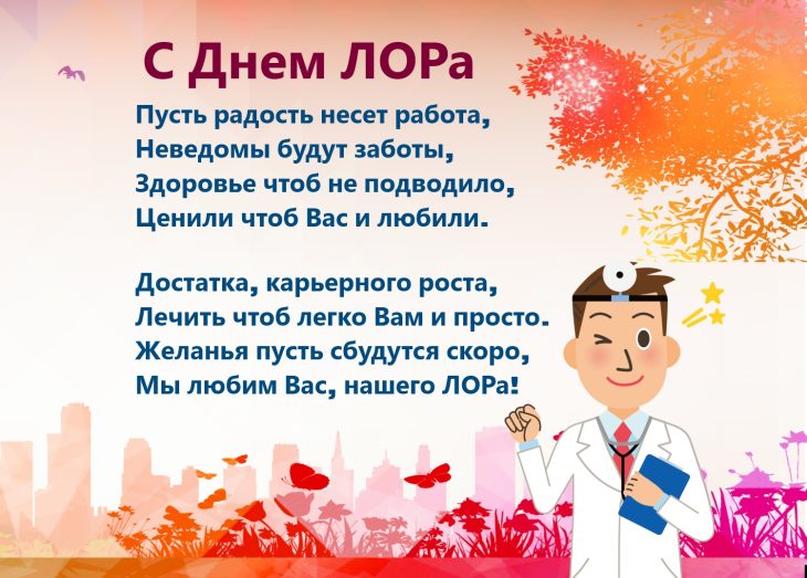 ЛОР всегда необходим,ЛОР везде незаменим.Ухо лечит, нос и горло,Избавляя вмиг от боли. Открытки на День отоларинголога!