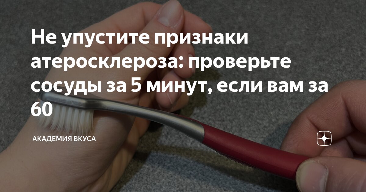 Не упустите признаки атеросклероза: проверьте сосуды за 5 минут, если вам за 60 Статья автора «Академия Вкуса » в Дзене ✍: После 60 лет наш организм начинает подавать знаки о трудностях, которые раньше были незаметны. Атеросклероз — одна из таких «тихих» недугов.