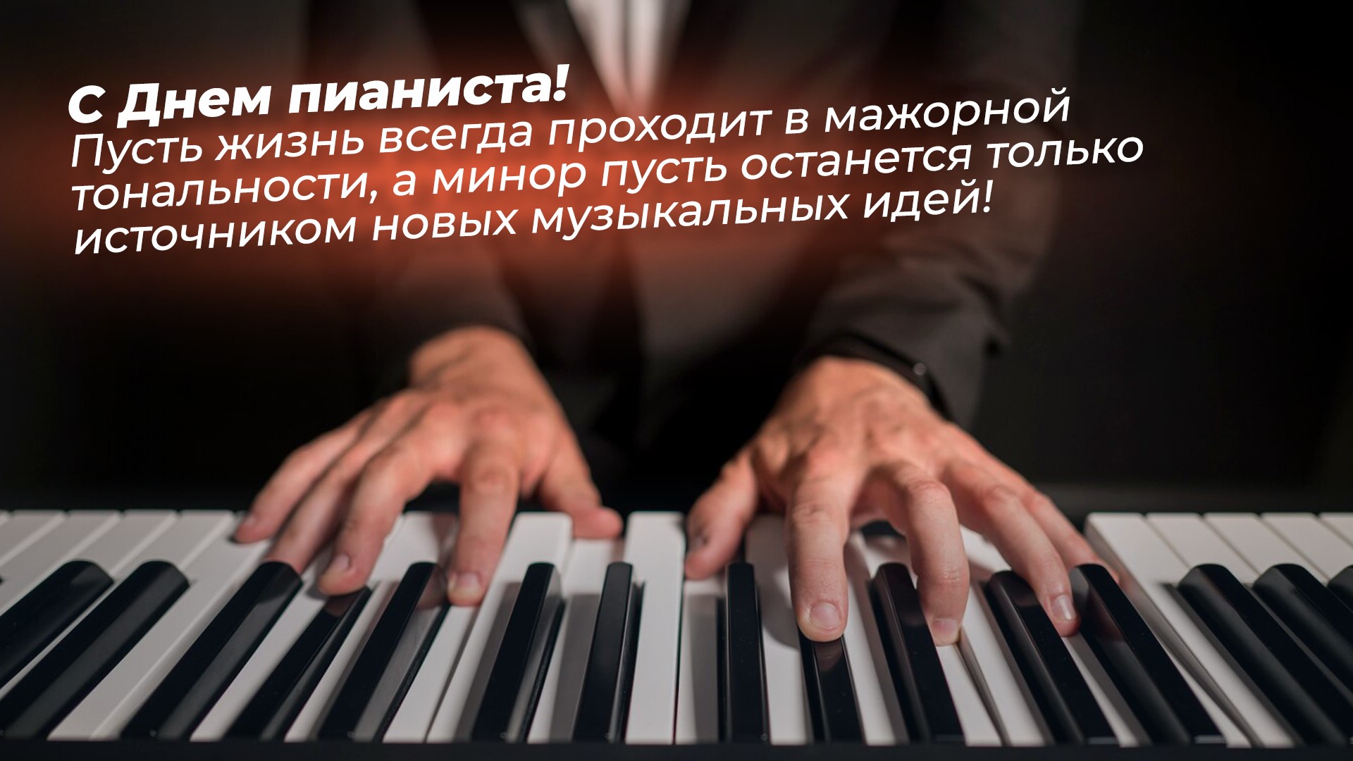 Мы в день пианиста, праздник чудный, Пожелаем вам успехов в вашем деле, А ещё попросим, коль не трудно, Нам сыграть, да так, чтоб души пели! Открытки на День пианиста!