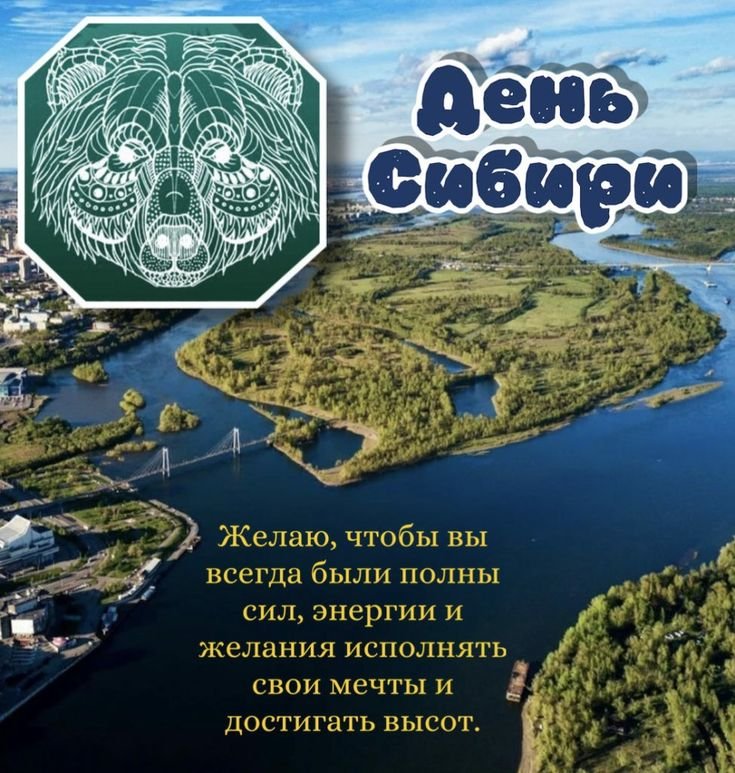 С Днем Сибири! Пусть бескрайние просторы, величественные реки и тайга вдохновляют вас на новые свершения, а морозный воздух придаёт сил. Открытки на День Сибири!