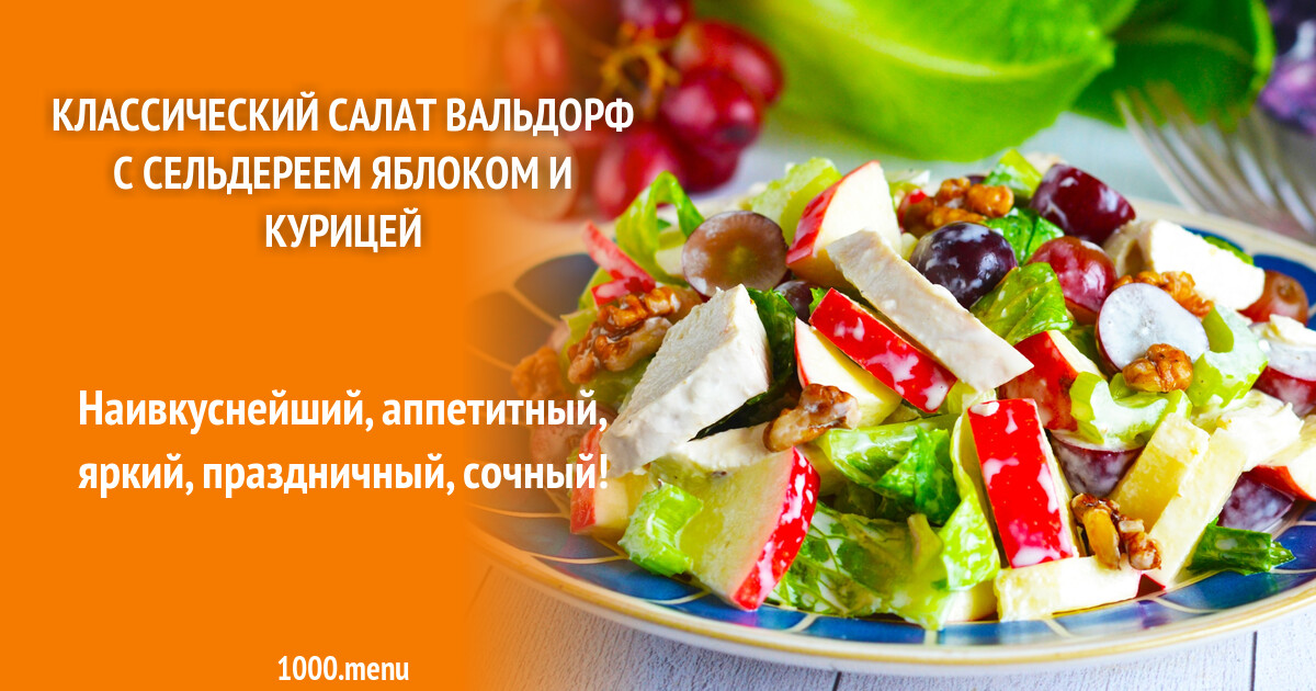 Классический салат Вальдорф с сельдереем яблоком и курицей рецепт фото пошагово и видео Наивкуснейший, аппетитный, яркий, праздничный, сочный! Подробнее