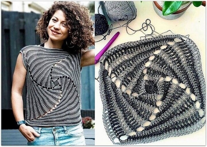 ​Завораживающая безрукавка Завораживающая безрукавкаУзор словно погружает в бесконечность.