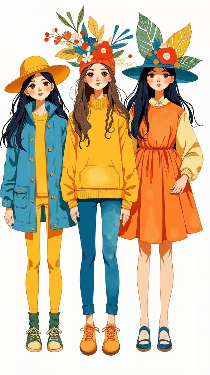 Девочки в гуашевом стиле: яркие образы и минимализм. Изображение из нейронной сети Flux - Flux.1 примеры промтов - Форум ИИ о нейросетях - Yes Ai