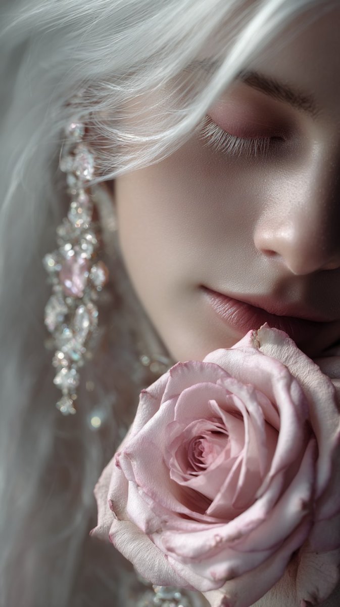 Нежность и красота в каждом штрихе: портрет с розой и длинными волосами. Генерация из нейронной сети Midjourney - Midjourney примеры промтов - Форум ИИ о нейросетях - Yes Ai