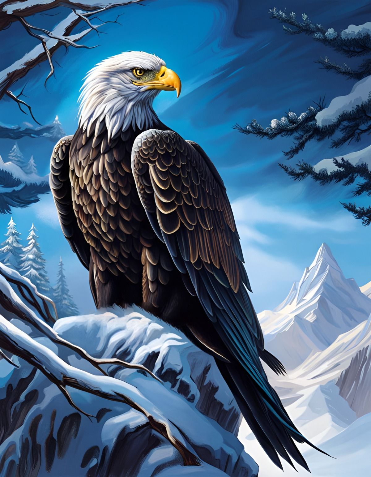 Black Winter Eagle, created using Nightcafe Ai tool for generating art using artificial intelligence.