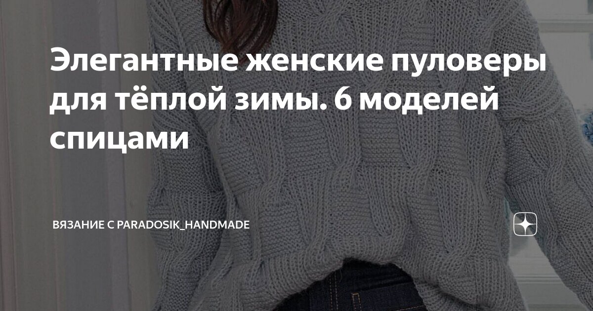 Элегантные женские пуловеры для тёплой зимы. 6 моделей спицами Статья автора «Вязание с Paradosik_Handmade» в Дзене ✍: Осталось две недели до Нового года, продолжаем вязать. Вообще, у меня было в планах сделать для вас какую-нибудь праздничную подборку.