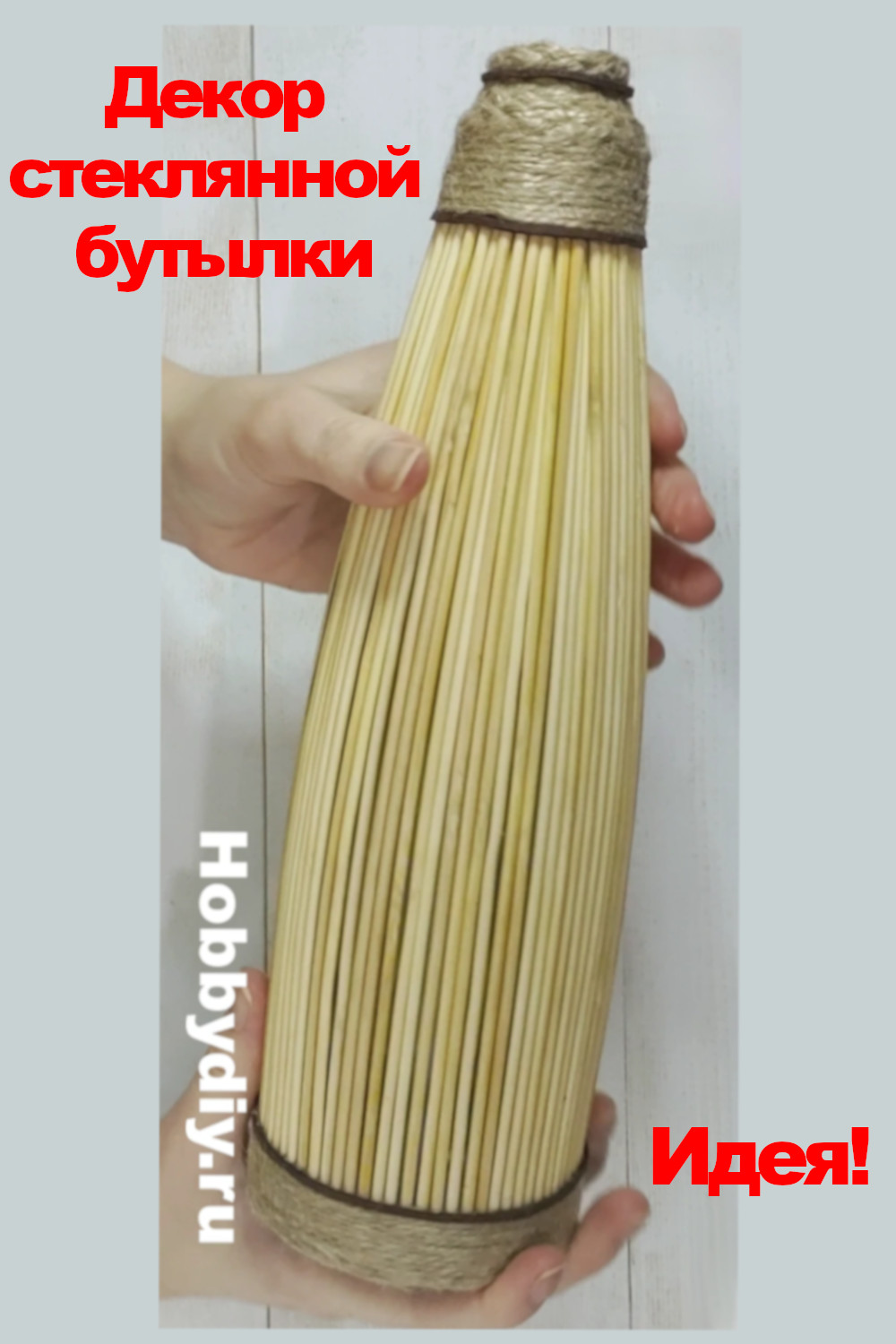 Идея декора стеклянной бутылки своими руками