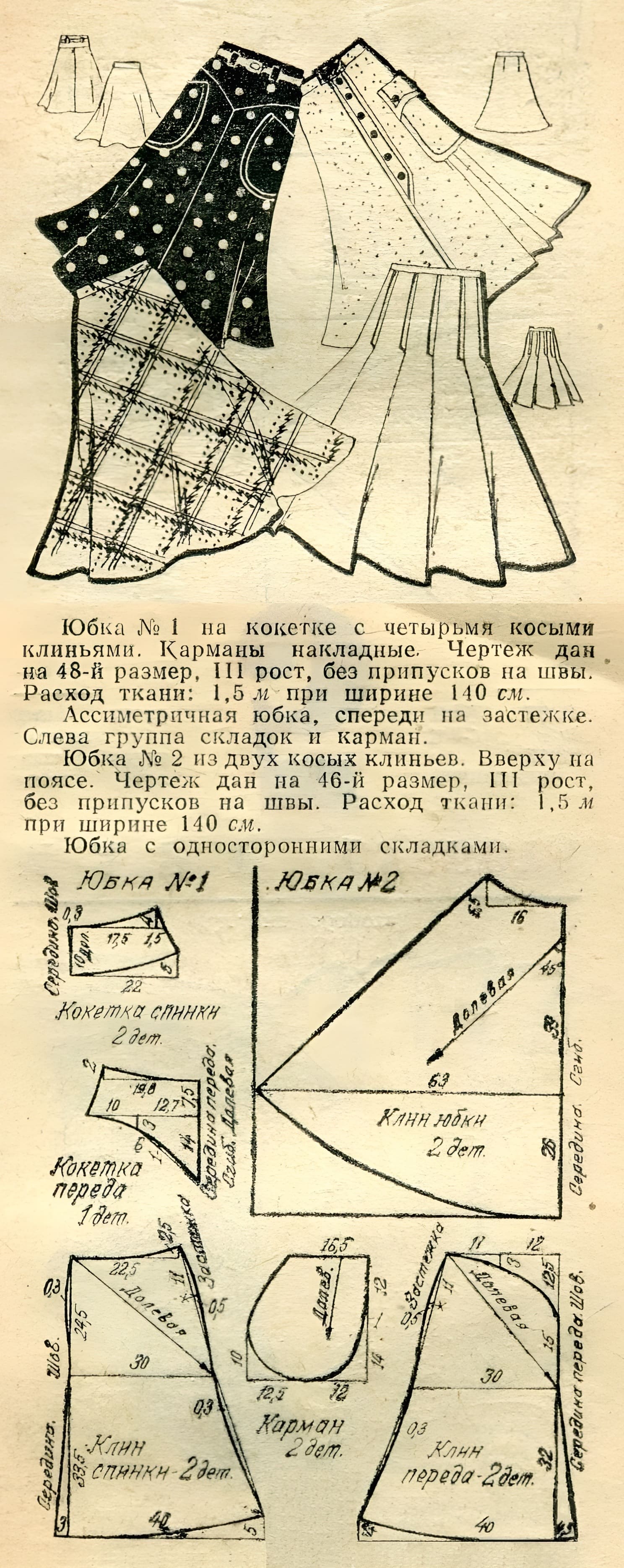 Юбка на кокетке с 4 косыми клиньями. Юбка с 2 косыми клиньями