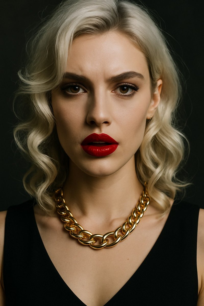 Роковая красотка с алыми губами и белыми локонами. Генерация из нейросети Sora Images - Sora Images примеры промтов - Форум ИИ о нейросетях - Yes Ai