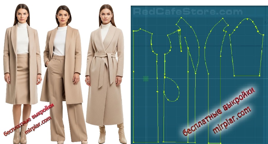 Женское прямое пальто с шалевым воротником: готовые выкройки бесплатно в натуральную величину
