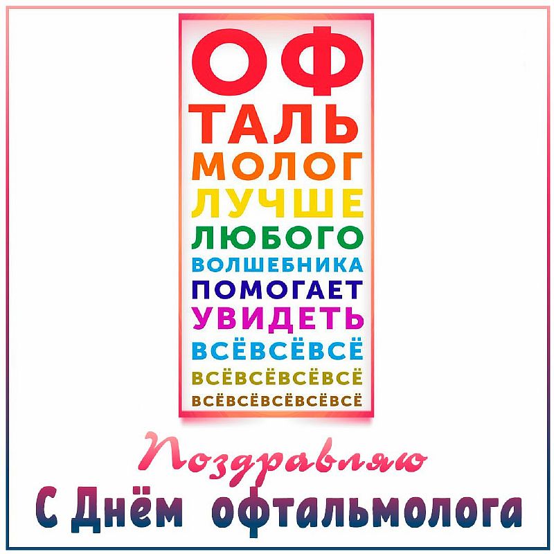 С Днем офтальмологии Пусть зрение будет классным И не подводит глаз, Будут сто процентов Всегда пускай у вас. Открытки на день офтальмолога!