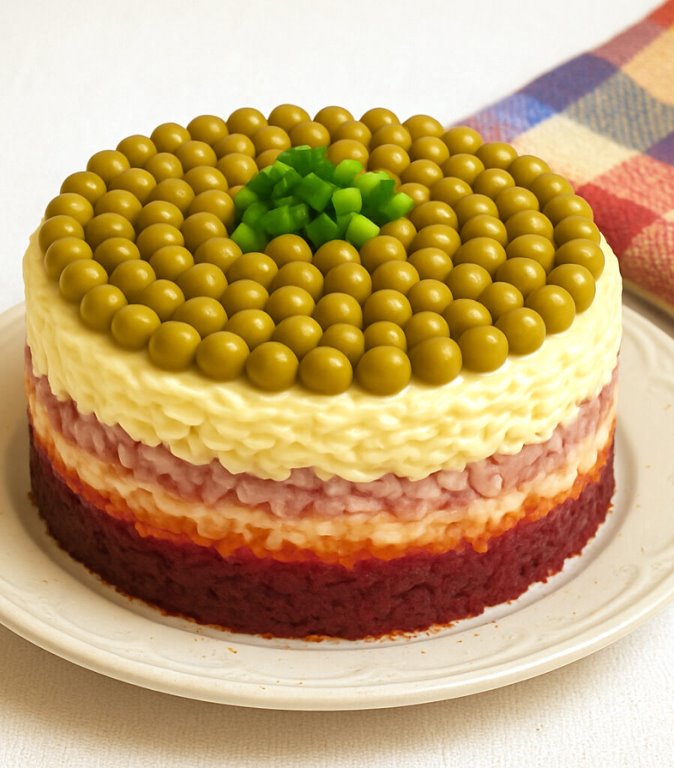 В нём мягко сочетаются пикантная сельдь, сладковатая свёкла, нежный картофель и яйца, а майонез связывает слои в единую сочную композицию.