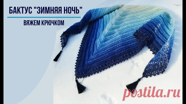 Бактус крючком “Зимняя ночь” Прекрасный теплый аксессуар для зимнего гардероба, простой в исполнении, но эффектный за счет градиентной пряжи. Можно носить поверх уличной одежды или как домашнюю уютную шаль. Если подобрать пряжу с хлопком в составе, получится отличный вариант на весну. Пряжа: Flowers alpaca Yarnart, 20% альпака,