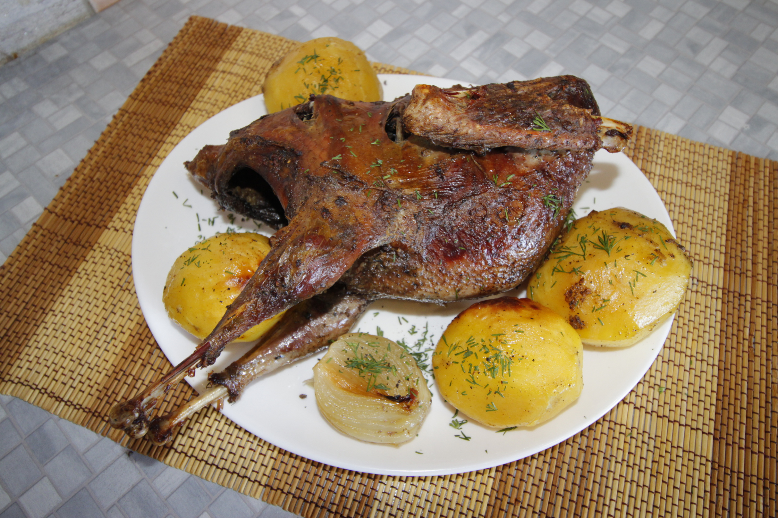 Глухарь или гусь. запечённый в рукаве с картофелем