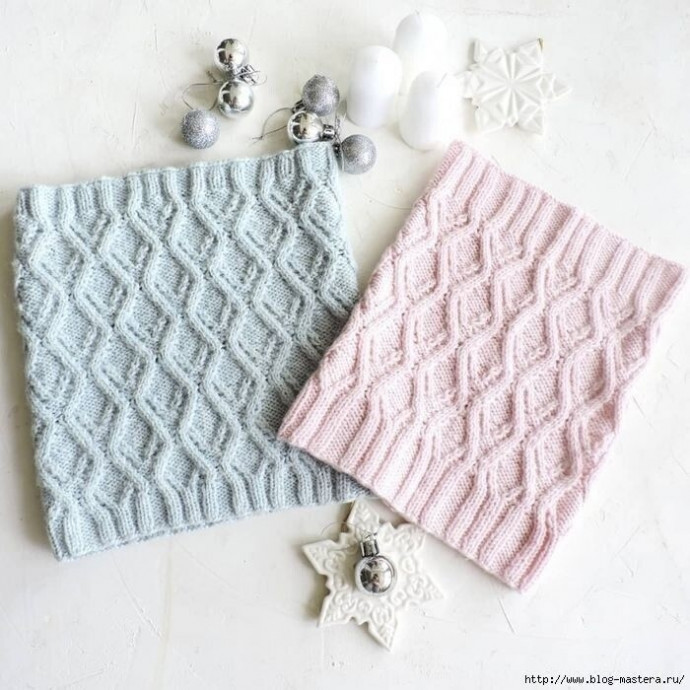 Снуд спицами с красивым узором в виде ромбов Набираем на спицы №3- 126+1 (140+1) петли, замыкаем в круг и поворачиваем вязание красивой стороной наборного ряда к себе.Вяжем 16 рядов резинки следующим образом: *1 лиц, 2 изн, 2 лиц, 4 изн, 2 лиц, 2 изн, 1 лиц, повторяем от * ещё 8 (9) раз. Можно высоту резинки менять, мне кажется, чем...
