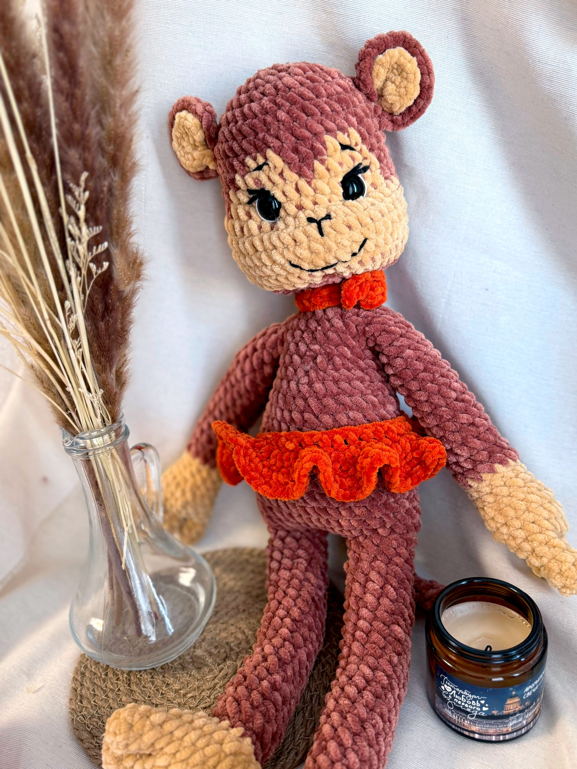 PDF Обезьянка Маня крючком. FREE crochet pattern; Аmigurumi toy patterns. Амигуруми схемы и описания на русском. Вязаные игрушки и поделки своими руками #amimore - плюшевая обезьянка, большая обезьяна из плюшевой пряжи, мартышка.