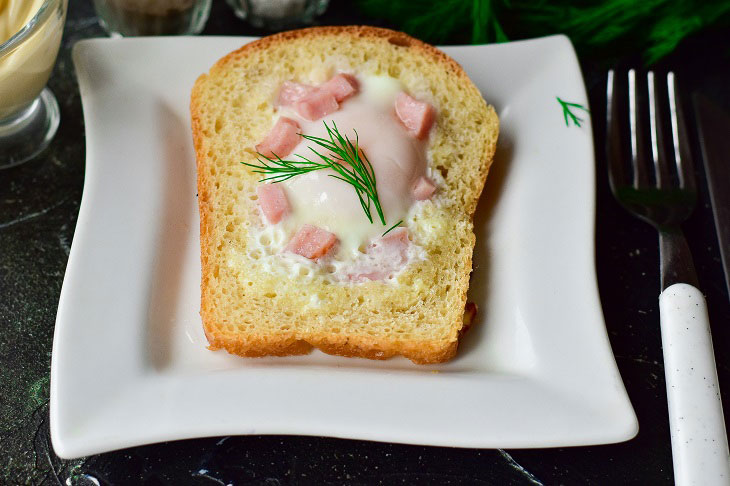 Яичница в хлебе В наши дни, когда так много забот и суеты, стали цениться блюда, которые можно приготовить быстро и легко. Именно таким блюдом и является эта закуска. Всего 5 минут - и сытный завтрак или перекус для всей семьи готов.Она готовится из обычного белого хлеба в виде кирпичика, яиц и ветчины....