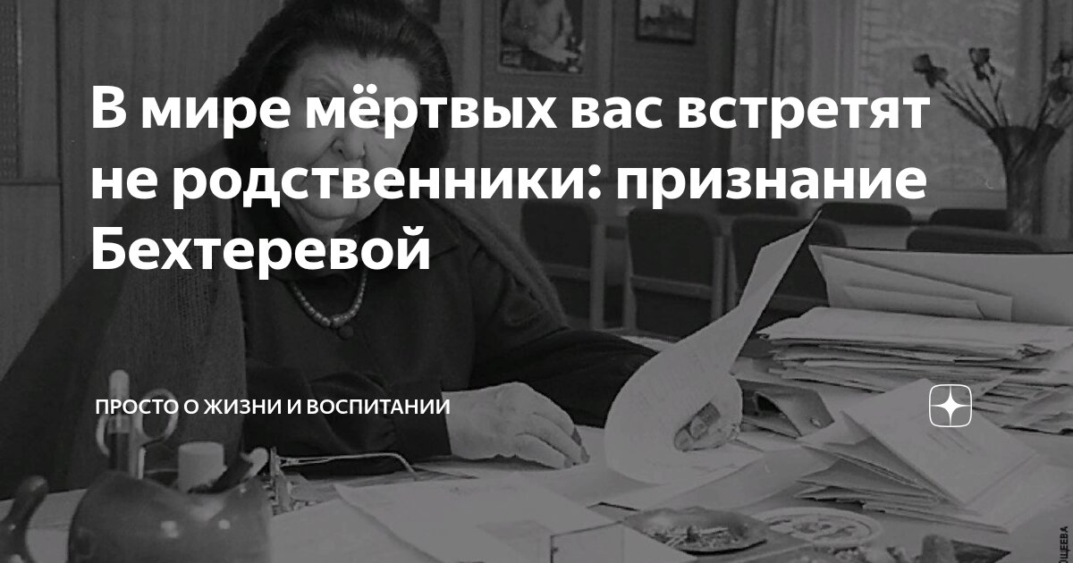 В мире мёртвых вас встретят не родственники: признание Бехтеревой Статья автора «Просто о жизни и воспитании» в Дзене ✍: Есть темы, о которых люди предпочитают говорить шёпотом. О смерти, например.