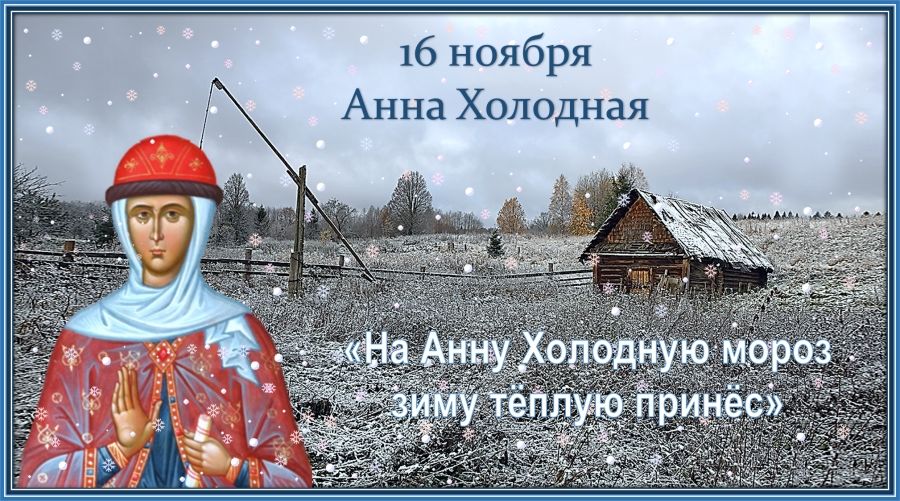 Анна Холодная. Народный праздник, получивший свое название от начала настоящих зимних холодов. В православии эта дата посвящается святой Анне – матери Богородицы, но в народном календаре она символизировала переход к зимнему периоду.