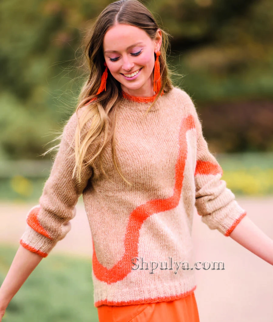 Вязаный пуловер с узором в технике интарсии — Shpulya.com - схемы с описанием для вязания спицами и крючком