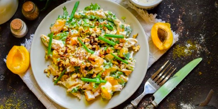 САЛАТ С КУРИЦЕЙ, АБРИКОСАМИ И ГРЕЦКИМИ ОРЕХАМИ