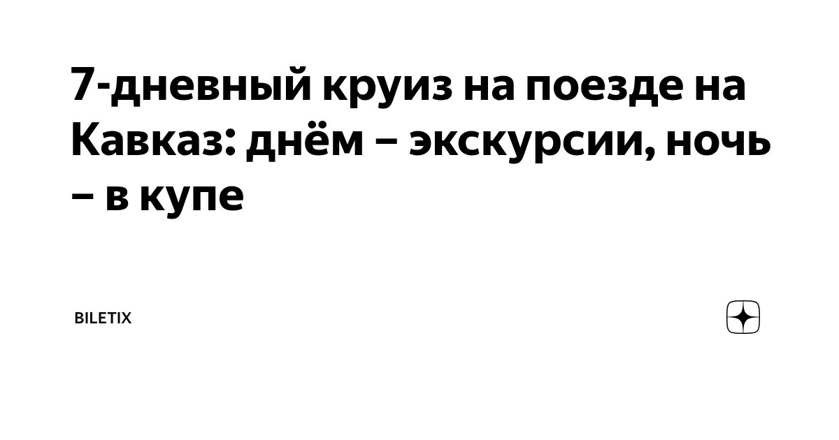 7-дневный круиз на поезде на Кавказ: днём – экскурсии, ночь – в купе Статья автора «Biletix» в Дзене ✍: Ночевать в поезде, а днём ездить на экскурсии по Кавказу, и так 7 дней!