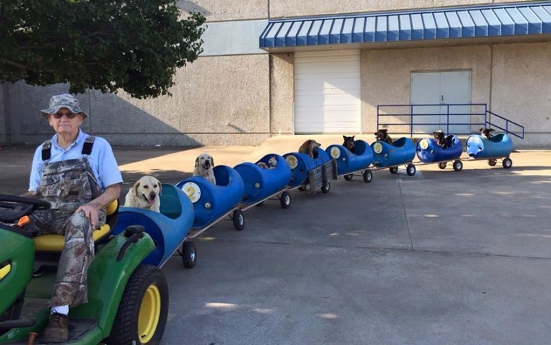 80-летний пенсионер построил самый крутой поезд в мире Юджин Бостик (Eugene Bostick) из Форт-Уорт, штат Техас построил поезд для бездомных собак, чтобы те могли путешествовать вместе с ним.