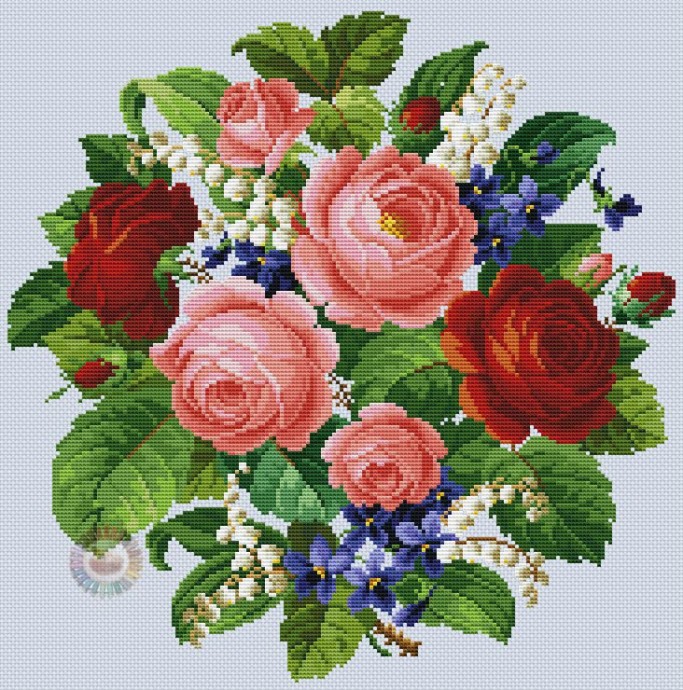 Вышиваем прекрасные букеты цветов Вышиваем прекрасные букеты цветовВоспользуйтесь прилагаемой легендой или подберите оттенки мулине для букетов самостоятельно - так получится неповторимо.