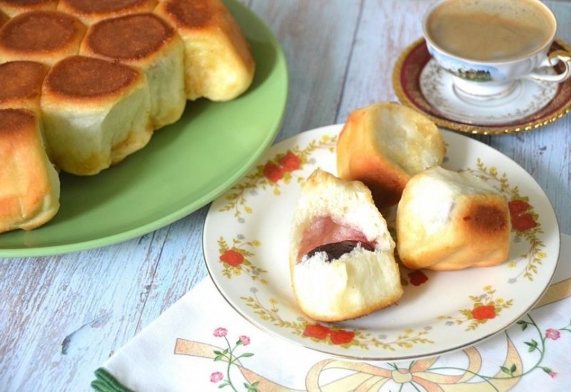 Разборник с вареньем Ингредиенты:Варенье — 200 гМолоко — 240 гМука — 330 гСоль — 0,5 ч. л.Сахар — 1 ст. л.Масло растительное в тесто — 2 ст. л.Масло растительное для смазывания перед выпечкой — 2 ст. л.Масло сливочное — 30 гДрожжи свежие — 10...