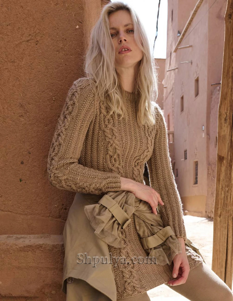 Приталенное вязаное платье в резинку с «косами» — Shpulya.com - схемы с описанием для вязания спицами и крючком