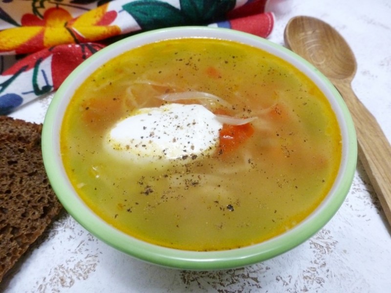 Щи с квашеной капустой Ингредиенты:Бульон (куриный, свиной) — 1,5 лКартофель — 3 шт.Капуста квашеная — 300 гЛук репчатый — 1 шт.Помидоры — 2 шт.Лавровый лист — 2 шт.Укроп (сухие семена) — 1 ч. л.Соль — по вкусуПерец — по вкусуСахар — по вкусуМасло...