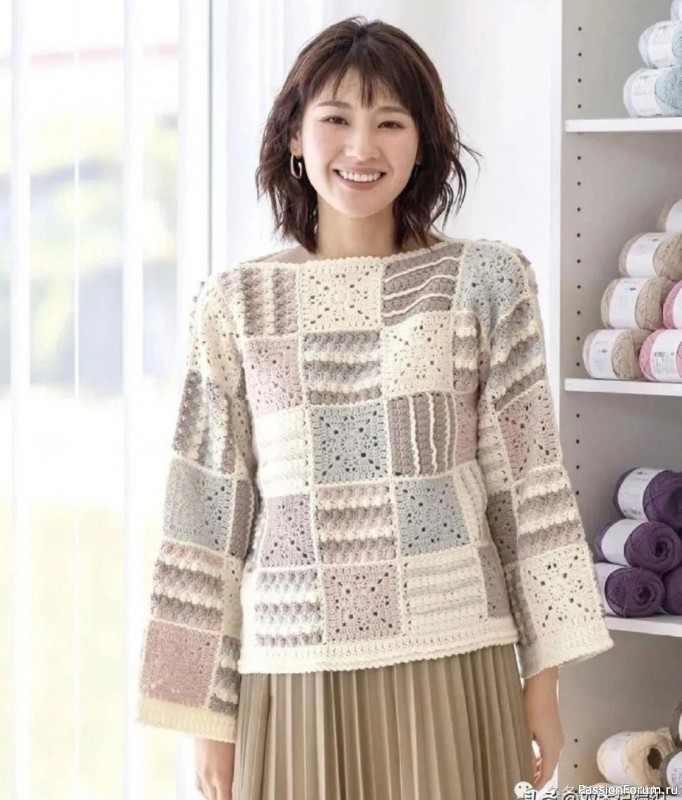 Тёплый свитер из квадратных мотивов. Схема | Женская одежда крючком. Схемы и описание