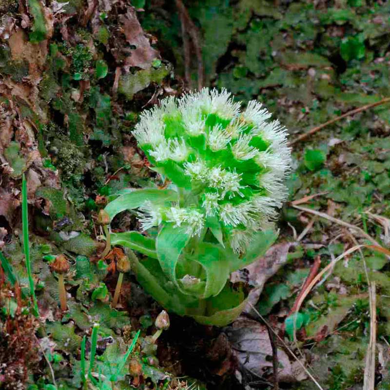 Лекарственное растение Белокопытник белый (Petasites albus). Многолетнее травянистое растение, к моменту цветения достигает 35 см, к моменту созревания плодов - 50 см. Очень похоже на белокопытник гибридный. Мутно-белые язычковые и трубчатые цветки собраны сначала в плотное, а затем рыхлое соцветие, в котором корзинки образуют кисть.