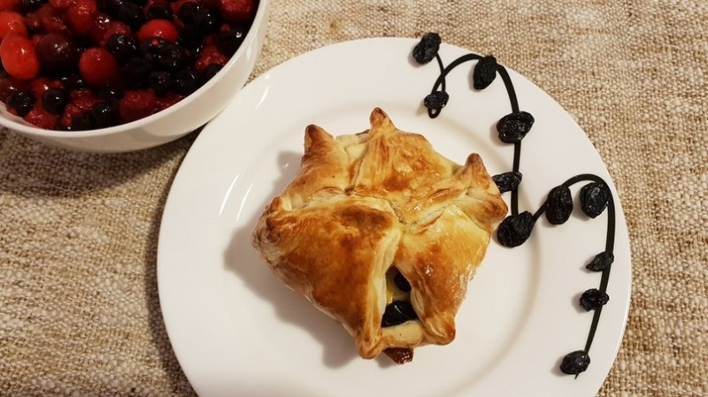 Слойки с творогом и изюмом Ингредиенты: