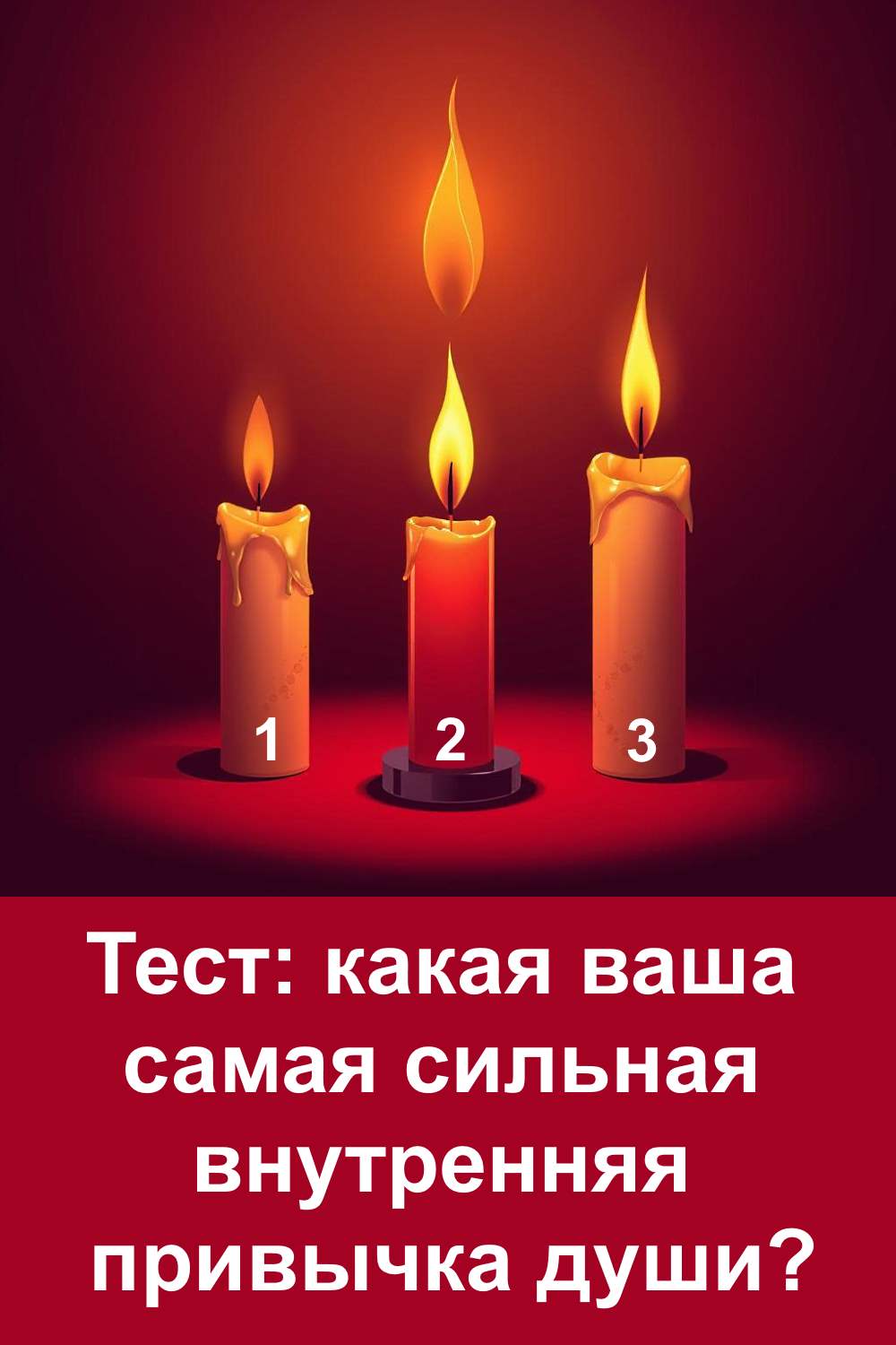 Тёплый и спокойный тест, который помогает понять внутренние привычки души. Образы свечей создают мягкую атмосферу и позволяют увидеть, какая сила направляет и поддерживает в жизни. Такой формат помогает заглянуть в себя, почувствовать свою устойчивость, спокойствие или огонь перемен. Этот тест не даёт жёстких рамок, он лишь показывает ту часть души, которая особенно ярко проявляется в разные моменты жизни.