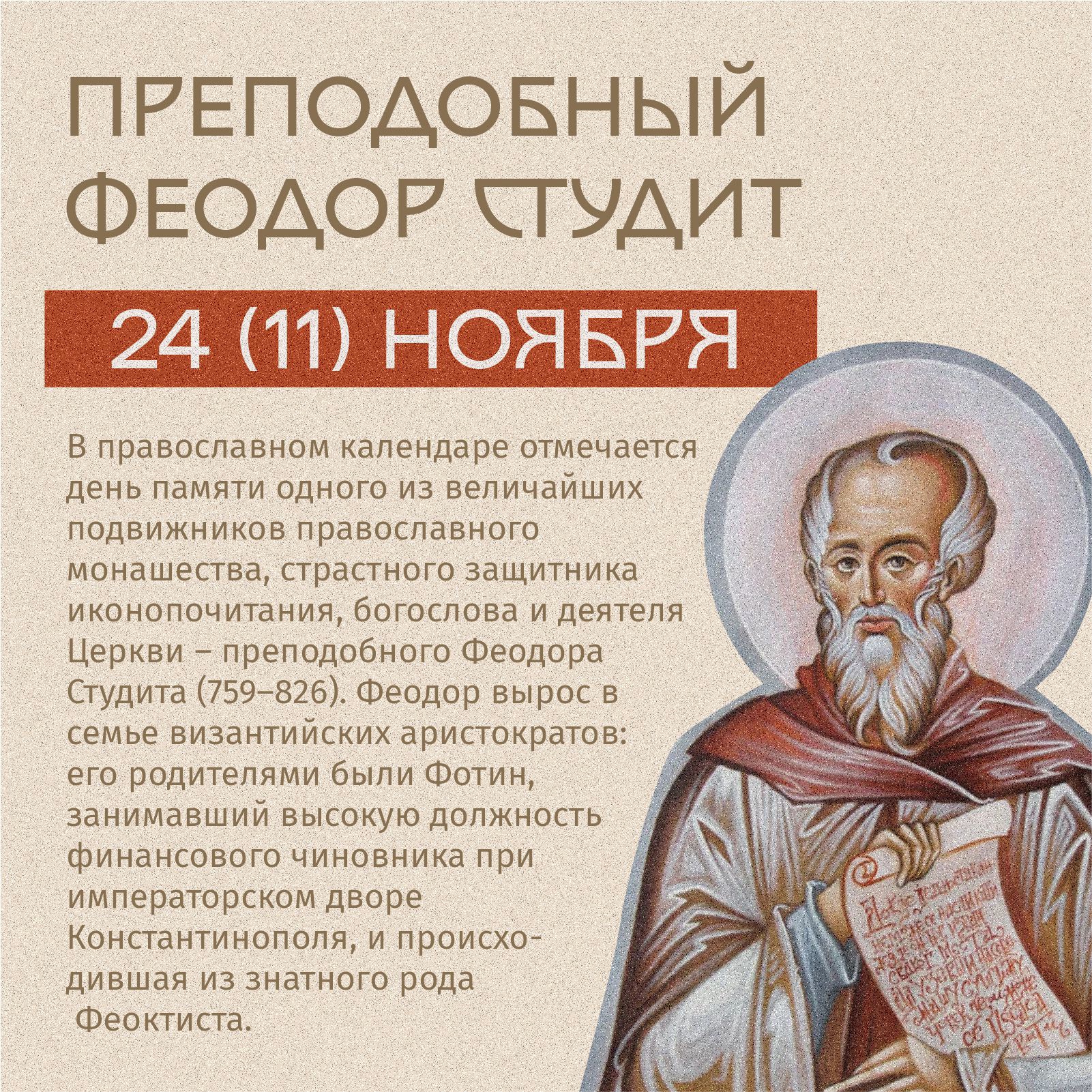 24 ноября – день памяти преподобного Феодора Студита. Открытки на День Феодора Студита!