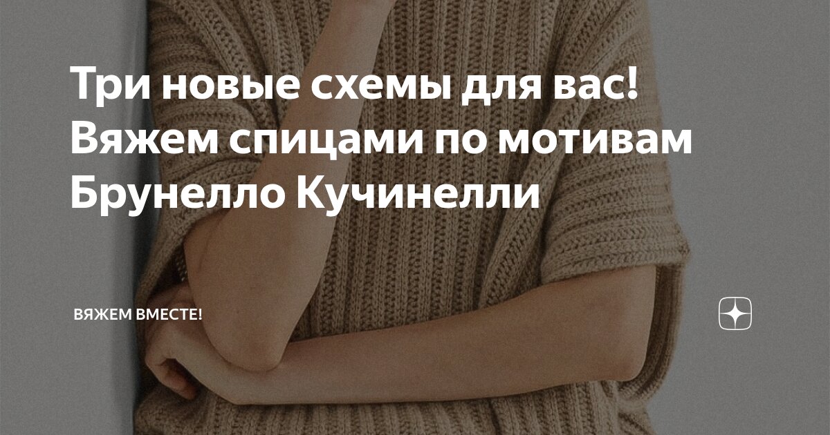 Три новые схемы для вас! Вяжем спицами по мотивам Брунелло Кучинелли Статья автора «Вяжем вместе! » в Дзене ✍: Прогуливаясь по офлайн-магазинам, поймала себя на мысли, что среди десятков моделей действительно цепляет взгляд далеко не каждая вещь.