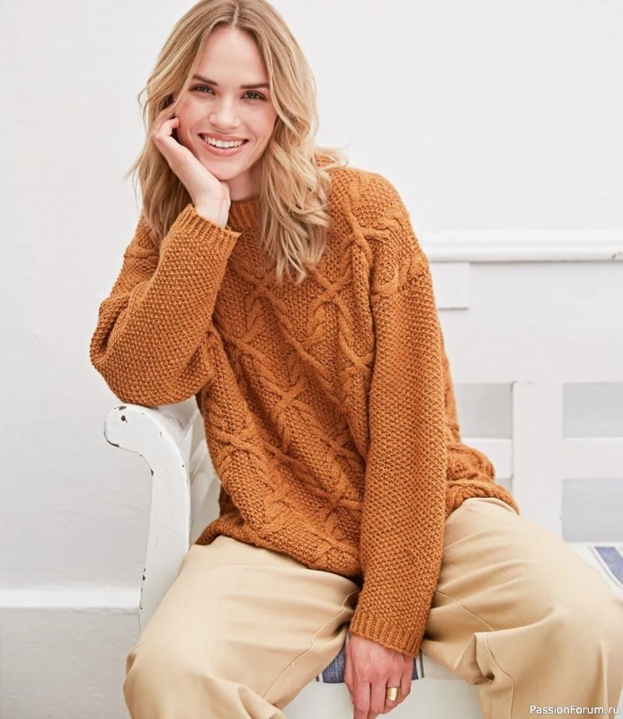 Джемпер с арановым и жемчужным узорами. Описание | Вязание для женщин спицами. Схемы вязания спицами