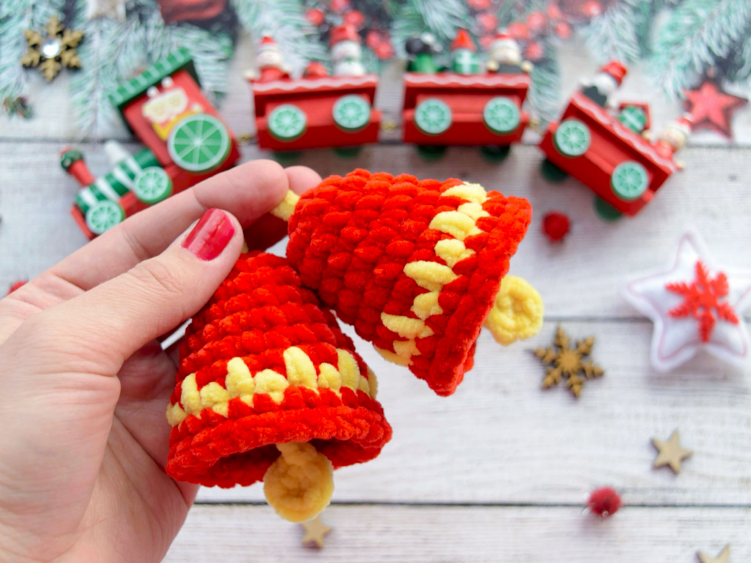 PDF Новогодние колокольчики крючком. FREE crochet pattern; Аmigurumi toy patterns. Амигуруми схемы и описания на русском. Вязаные игрушки и поделки своими руками #amimore - плюшевый колокольчик к Новому году, маленький колокол из плюшевой пряжи, Рождество, новогоднее украшение.